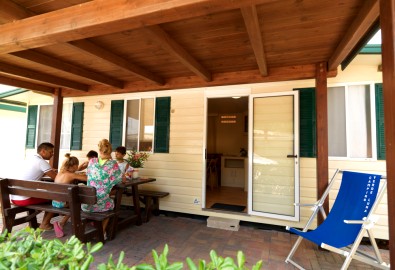Gli chalet sono composti da camera matrimoniale, camera con letto singolo, servizi igienici interni con doccia, soggiorno con angolo cottura completo, stoviglie e divano. Gli chalet sono dotati dei medesimi servizi dei bungalow, ed entrambi le soluzioni di alloggio permettono di usufruire della formula mezza pensione o pensione completa presso il ristorante del Campeggio.